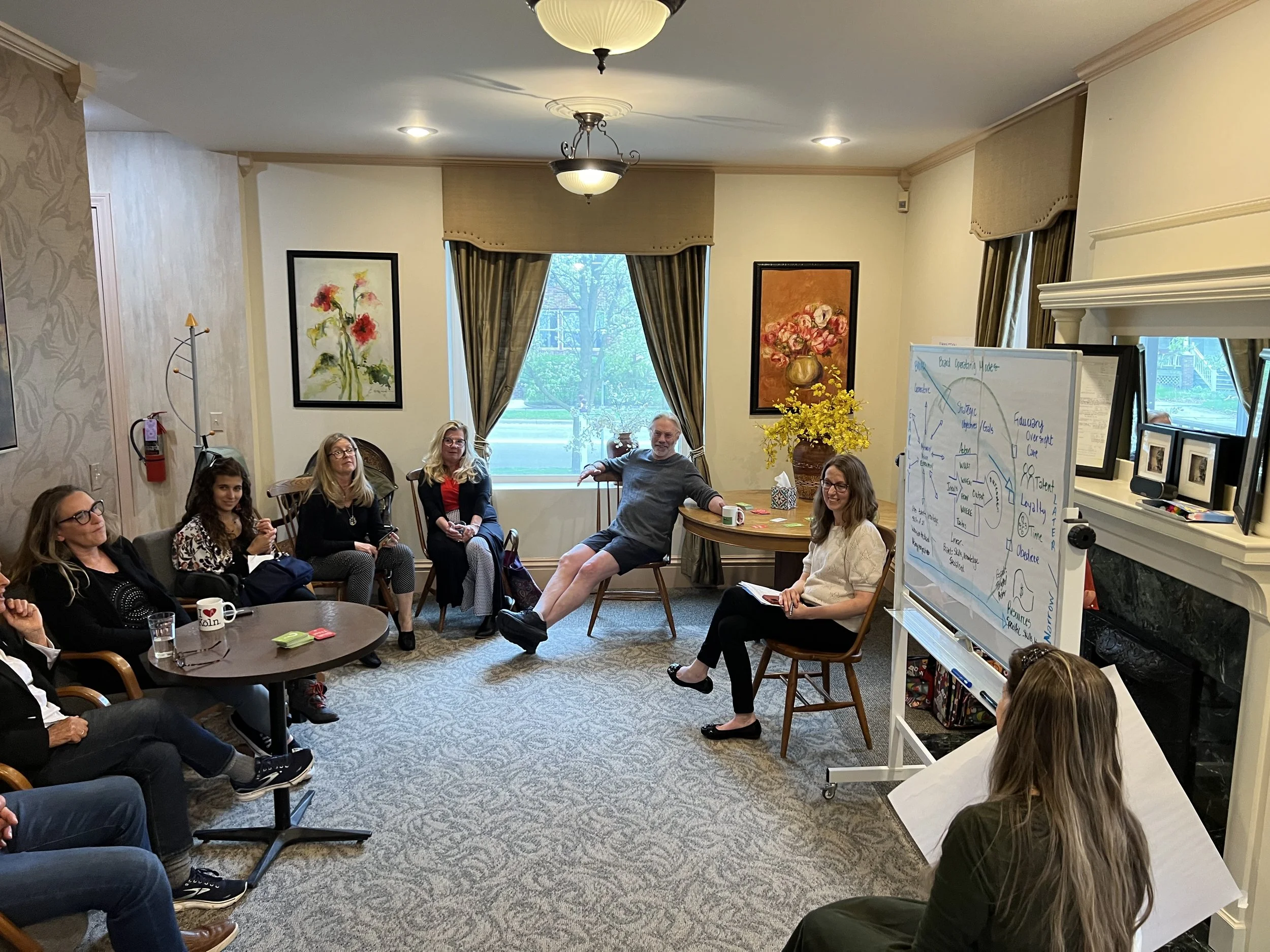 It was so rewarding that for their first board meeting, our two newest members -- Natalia Carvalho-Pinto and Deborah Harsha -- were able to be part of the "Having Generative Discussions" experiential workshop, offered and facilitated by Amy Mervak and Allison Hammond (pictured above). So many wonderful ideas and conversations on building and maintaining a cohesive, constructive board were shared. We also said farewell to long-time board member Daniela Schroeter, for whom this was her last board meeting. We thank her and congratulate her on her 2024 WMU Presidential Innovation Professorship and all the amazing things she will continue to do.
