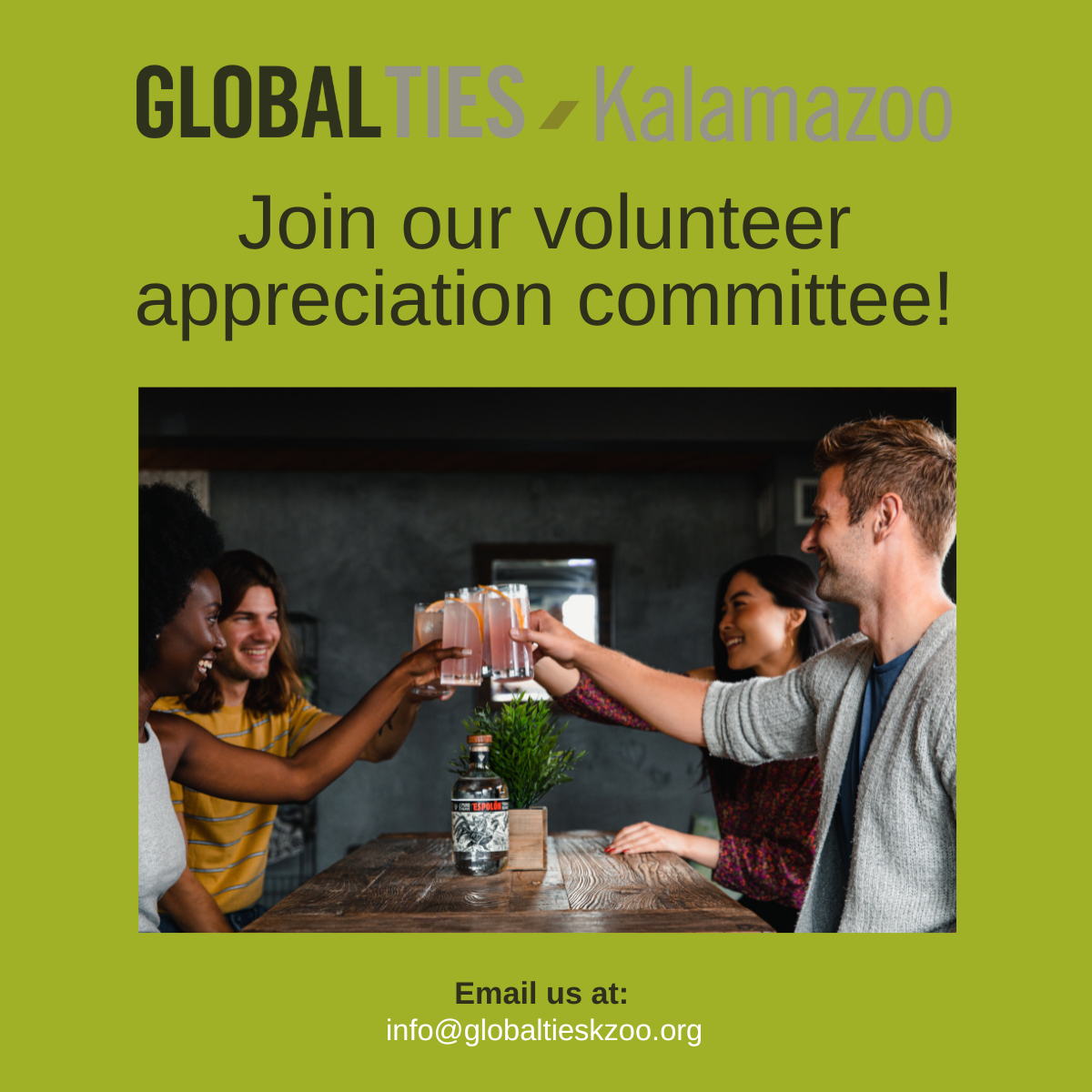 We’re looking forward to honoring these citizen diplomacy contributions at a celebratory gathering this spring. If you enjoy event planning and hospitality, we’d love to have you be part of our volunteer appreciation committee. Share your interest and/or questions with us via email at info@globaltieskzoo.org.
